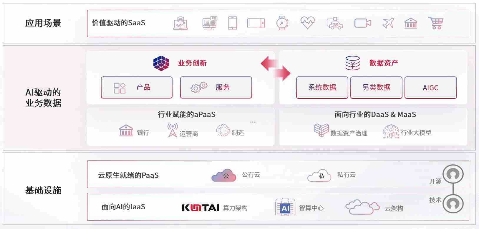 数字时代,,,围绕企业数字化转型的关键要素,,z6尊龙数码开创性的提出数云融合战略和技术体系框架,,,着力在云原生、、、数字原生、、、AI原生和信创产业上架构产品和服务能力,,,为处在不同数字化转型阶段的快消零售、、、汽车、、、、金融、、、、医疗、、政企、、、教育、、运营商等行业客户提供泛在的敏捷IT能力和融合的数据驱动能力,,,,构建跨界融合创新的数字业务场景和新业务模式,,助力企业级客户建立面向未来的核心能力和竞争优势,,全面推动社会的数字化、、、智能化转型升级。。。。